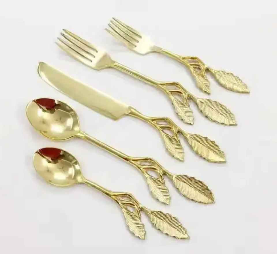 Juego de Cubiertos de Metal con Diseño de Hojas, Juego de Cubiertos de Acero Inoxidable de Diseño Moderno, Pulido a Mano, Mangos de Diseño Creativo, Alta Calidad