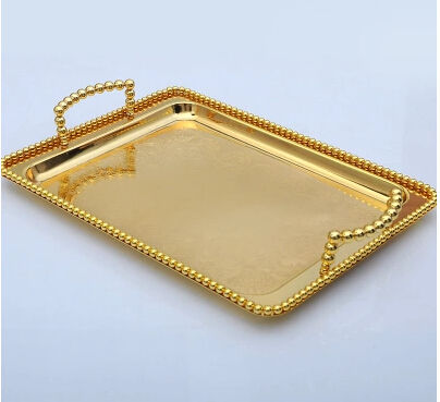 Diseñador de hojas de aspecto elegante, decoración de mesa de Metal dorado, bandejas de frutas, suministros al por mayor, bandeja para servir frutas de mesa de lujo