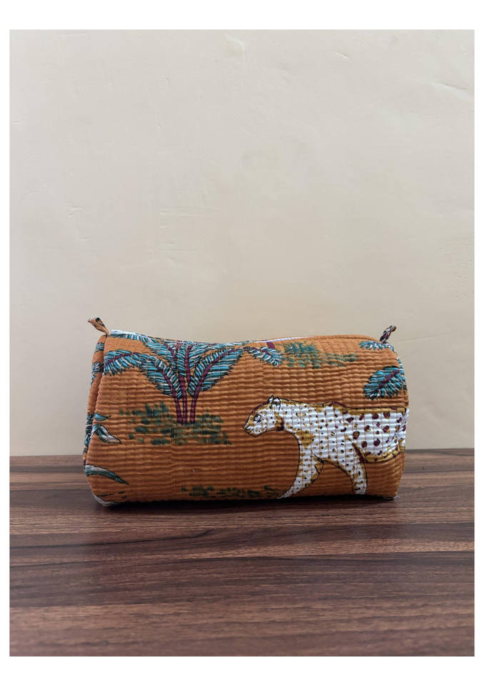 Bolsa de Maquillaje Acolchada de Algodón con Estampado de Hojas y Leopardo, Organizador de Cosméticos de Viaje, Juego de 3 Bolsas, Precio al por Mayor