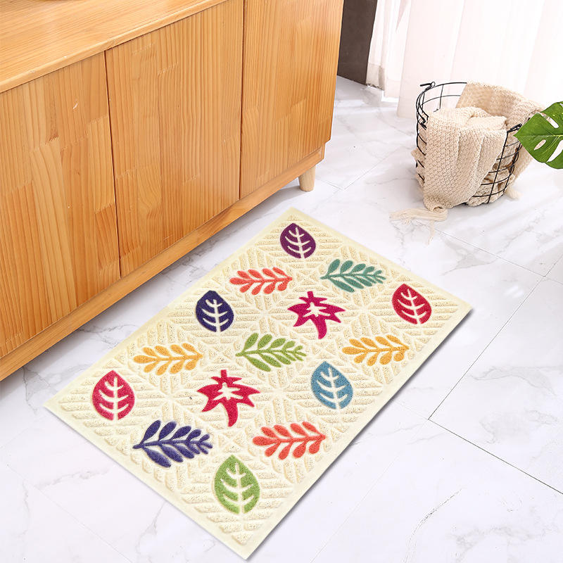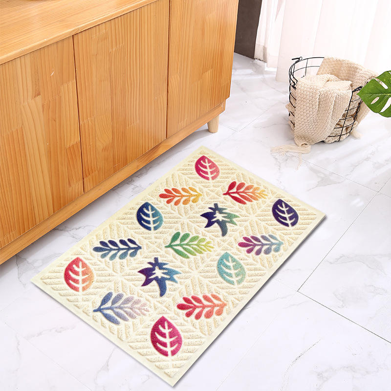 Alfombra de PVC con diseño de hojas en relieve, rectangular, antideslizante, para la entrada del hogar, alfombra prefabricada para baño y sala de estar