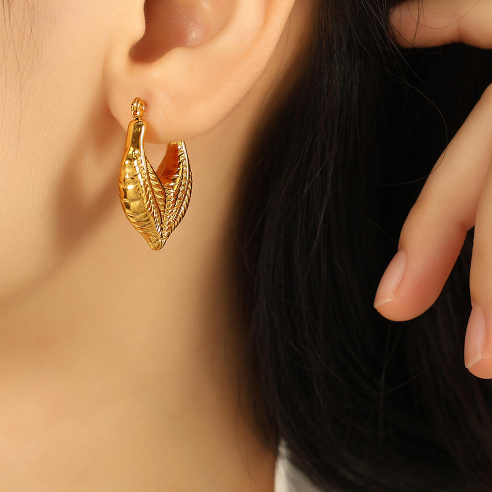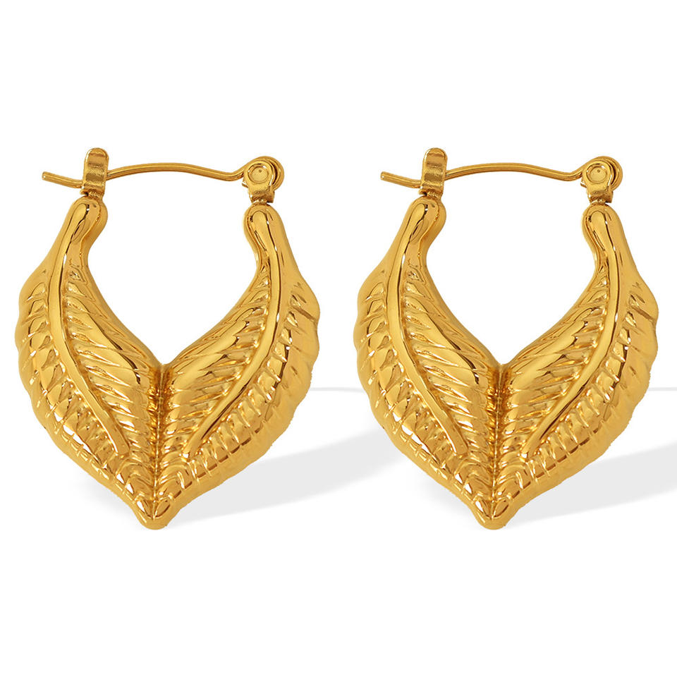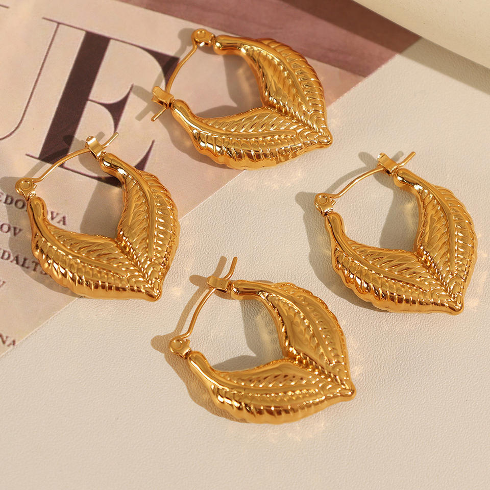 Pendientes de Aro con Diseño de Hojas, Chapados en Oro, Aleación de Zinc, Joyería de Moda para Mujer