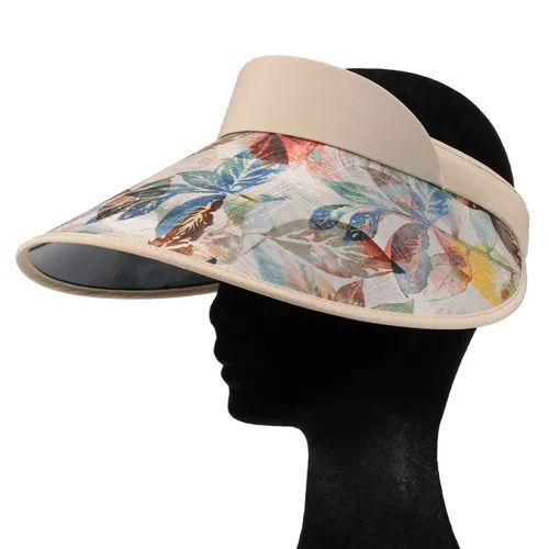 Sombrero de sol con clip y diseño de hojas, sombrero de sol de moda para mujer con parte superior vacía, sombrero de sol 100% fibra de poliéster