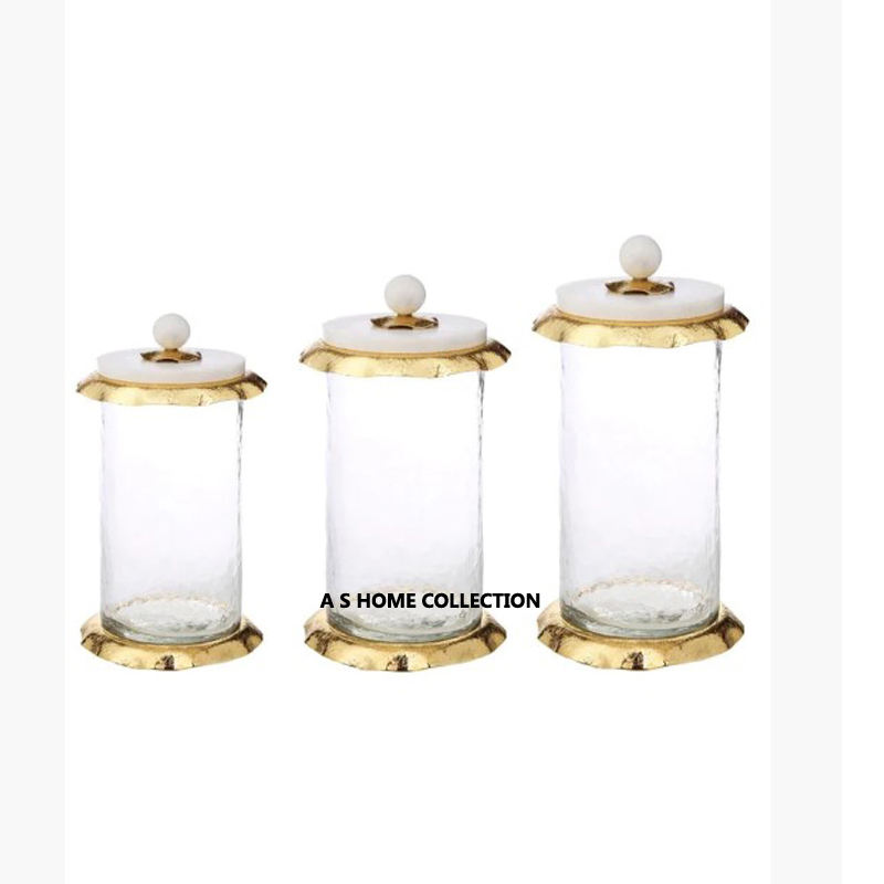 Juego de 7 Recipientes Redondos de Aluminio y Vidrio con Tapa, Diseño de Hojas, para Cocina, Uso Doméstico, de Lujo