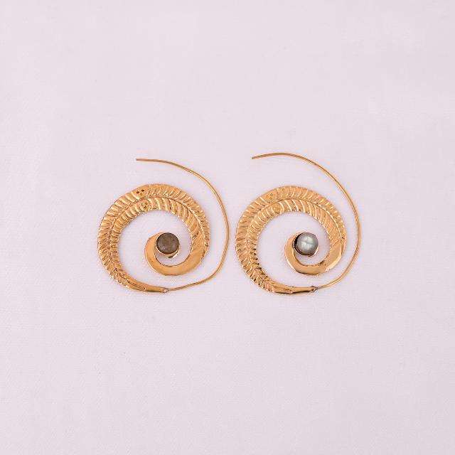 Nombre o palabras:Leafy Spiral Gold Plated Earrings With Pearl