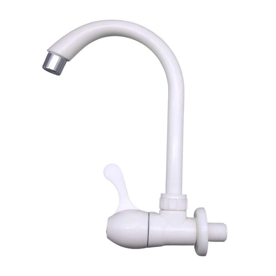 Grifo de Cocina con Diseño Antiderrames, de Alta Calidad, con Manija de Plástico Blanco, Resistente