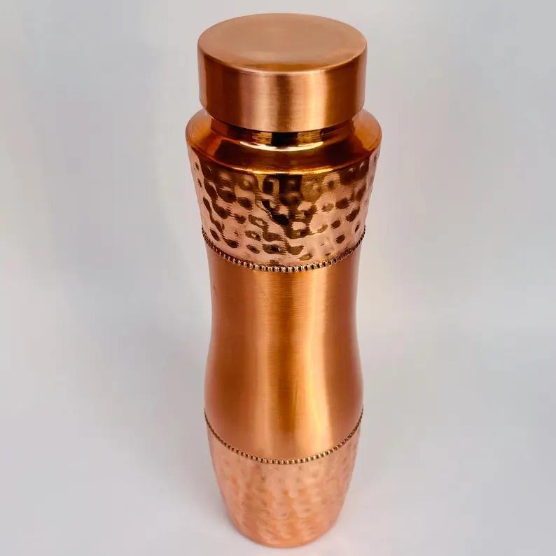 Botella de agua de cobre puro a prueba de fugas con acabado pulido brillante para oficina, hogar, gimnasio y uso de viaje