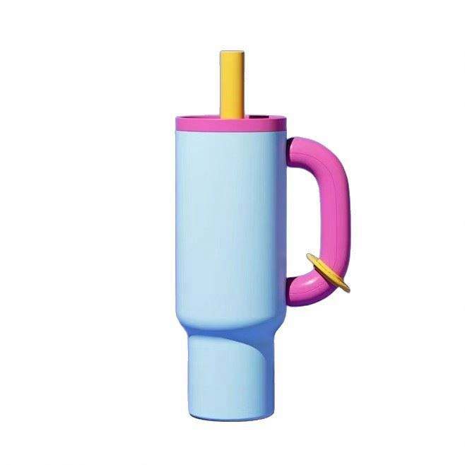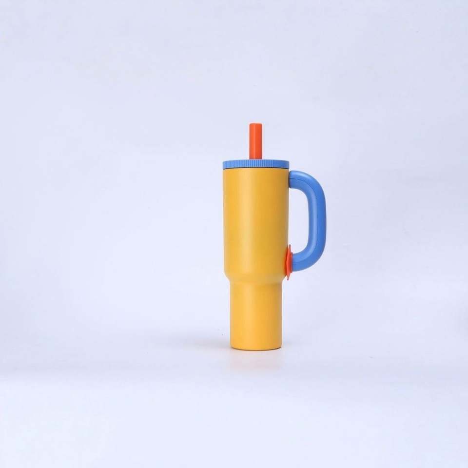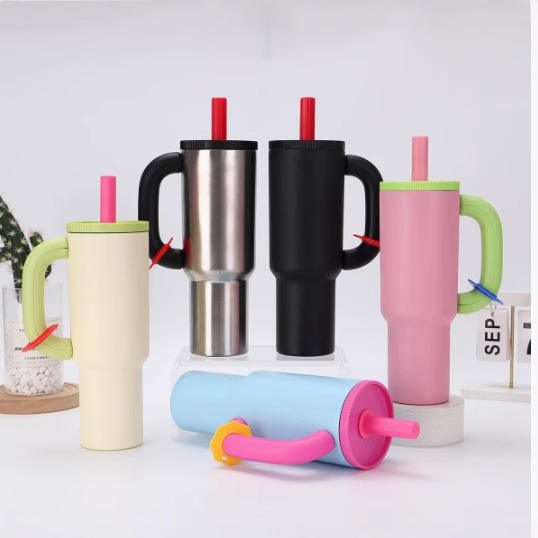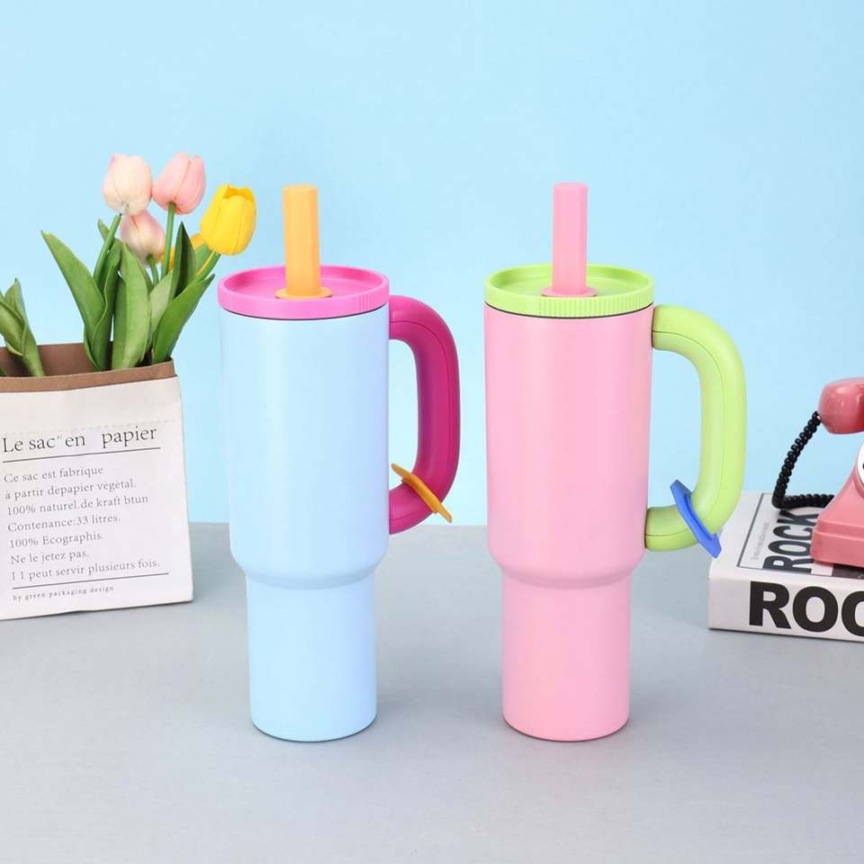 Botella de agua de acero inoxidable a prueba de fugas, taza de vacío de doble pared con aislamiento, vaso de 40Oz con asa, Pajita abatible