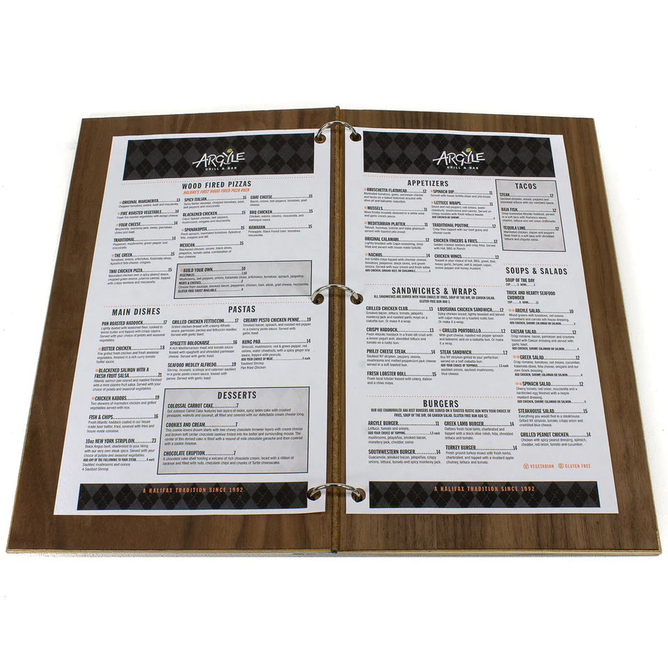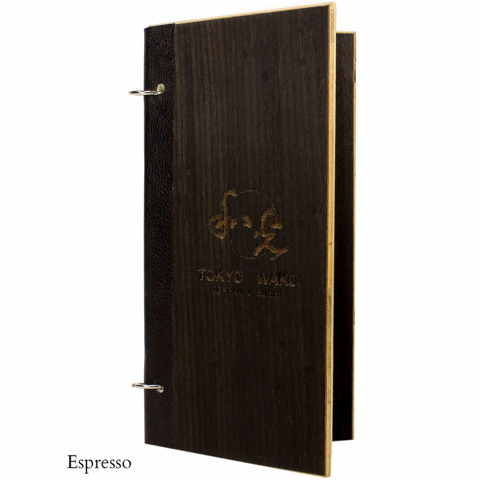 Cubierta de cuero para menú A4, material de madera y papel con anillos a presión, soporte para menú de hotel y restaurante