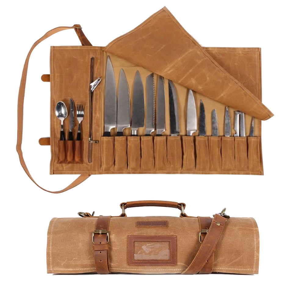 Palabras clave:Estuche enrollable de lona y cuero genuino para cuchillos