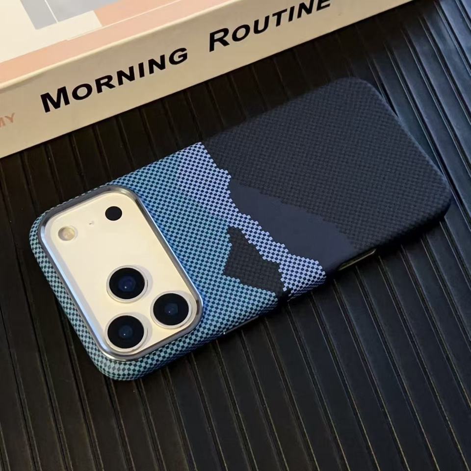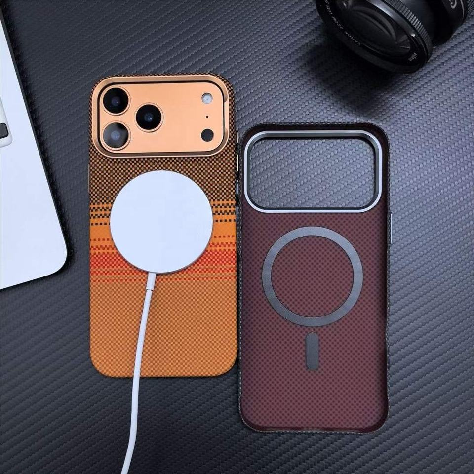 Funda Protectora para Teléfono Móvil de Policarbonato con Recubrimiento de Cuero, Fibra de Aramida, Patrón Magnético, Carga Inalámbrica y Resistente a Golpes para iPhone