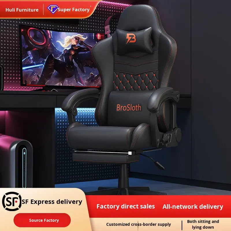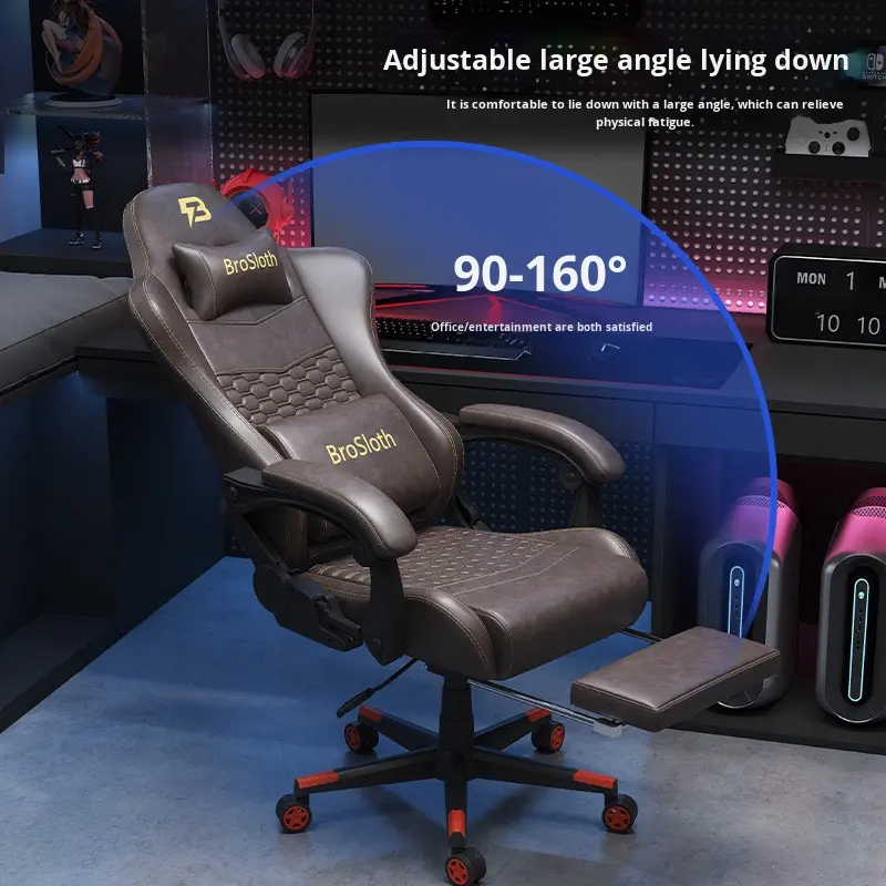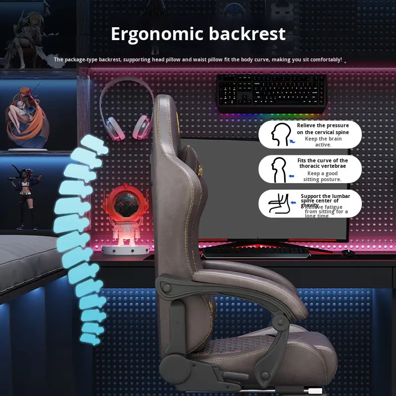 Silla de Juego para Computadora de Cuero, Ergonómica, Reclinable, con Masaje Eléctrico, Reposabrazos 4D, para Uso en Casa o Cibercafé