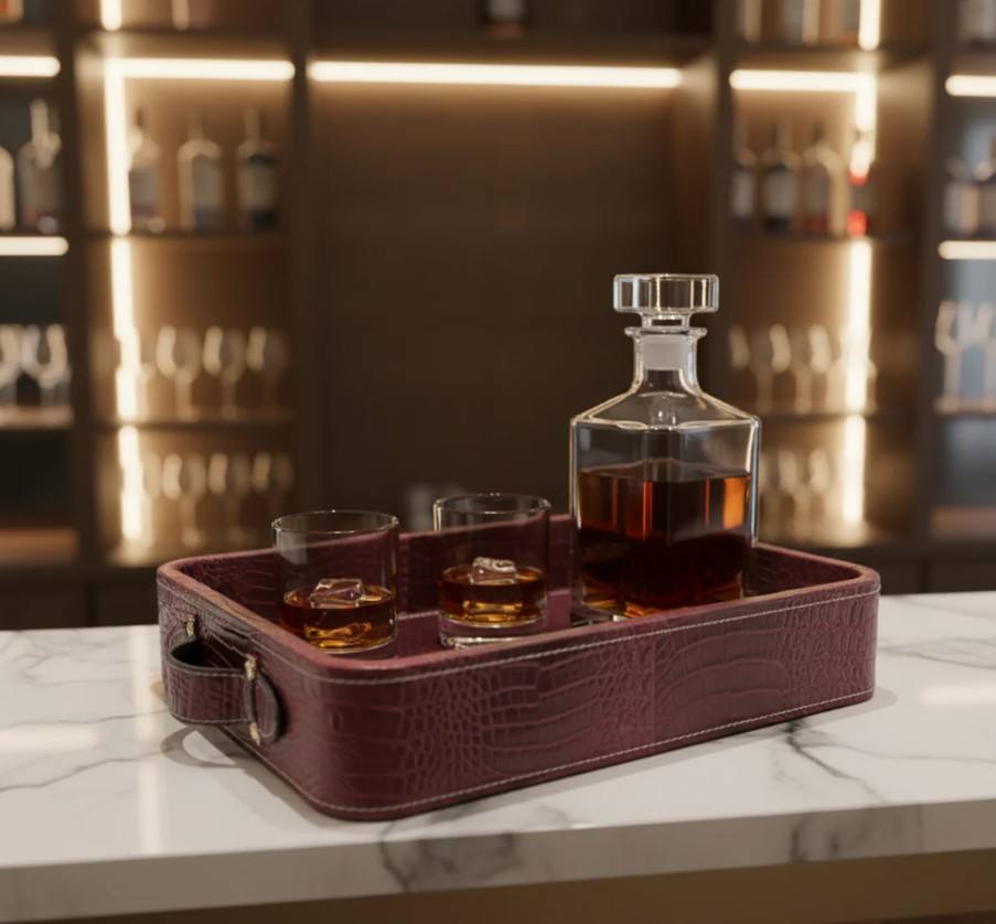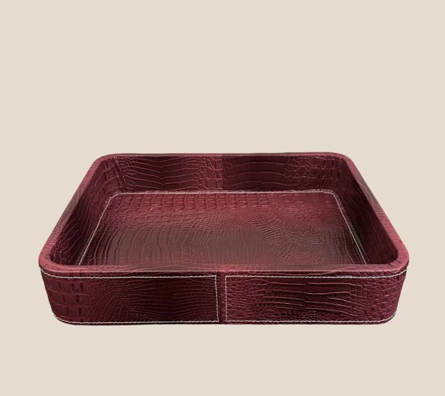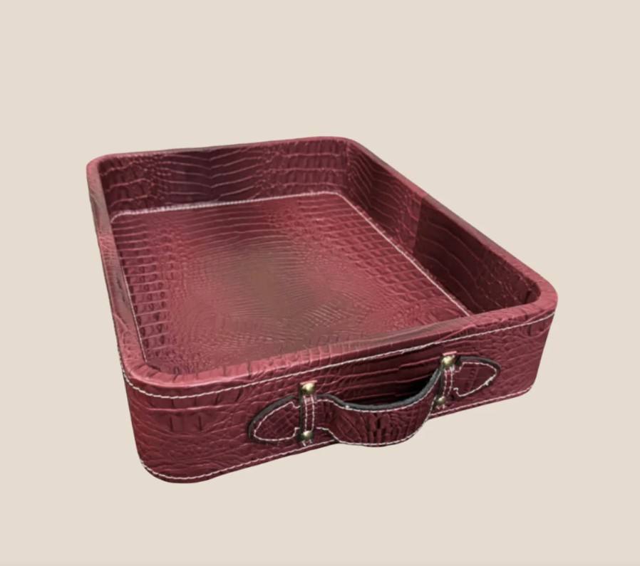 Bandeja de Servicio Rectangular Contemporánea de Cuero con Esmalte de Color, Apta para Lavavajillas, para Uso en el Hogar y Hoteles