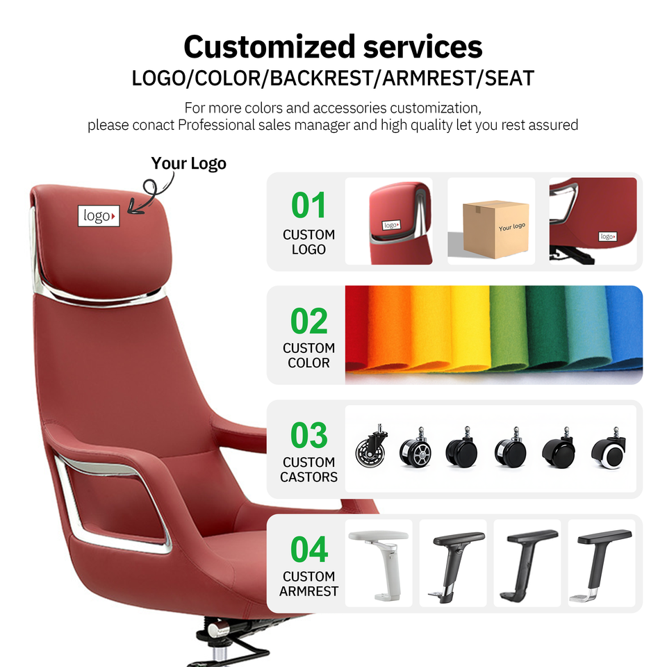 Silla Ejecutiva de Cuero para Escritorio de Computadora, Altura Ajustable, Inclinación Giratoria, Silla Ergonómica, Silla de Oficina, Chefsessel Aus Leader