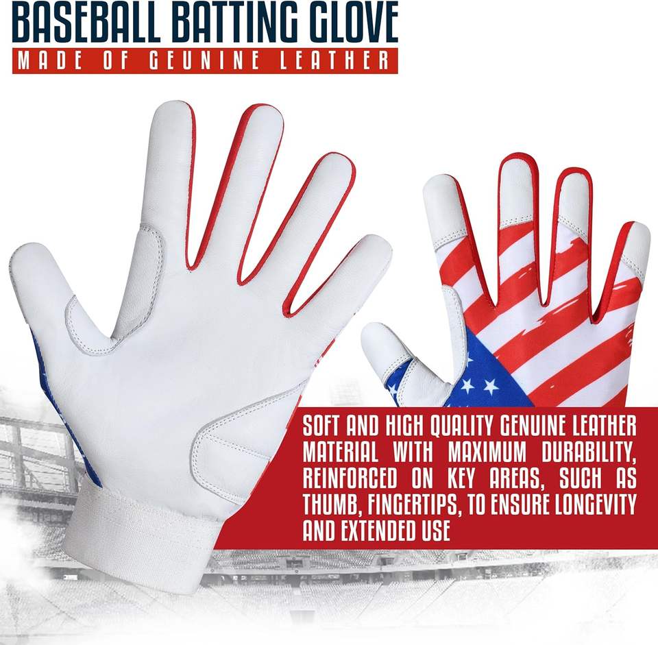 Guantes de Bateo de Béisbol y Sóftbol de Cuero para Primera Base - Bandera Americana para Jóvenes y Adultos Unisex