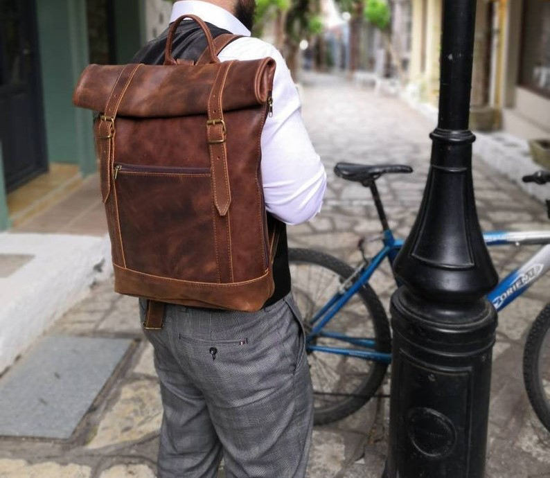 Nombre del producto:Mochila de cuero Roll Top