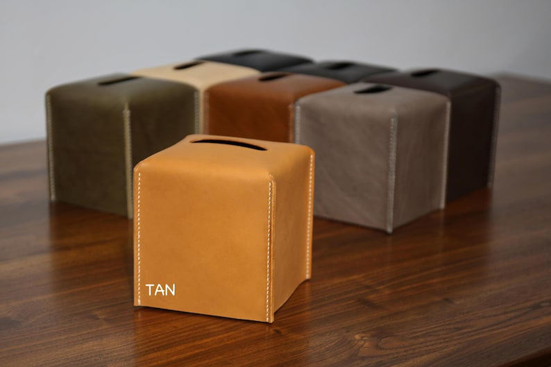 Funda de cuero para caja de pañuelos Cognac Tan Dark Chocolate Moss Cement Black Holder 2017