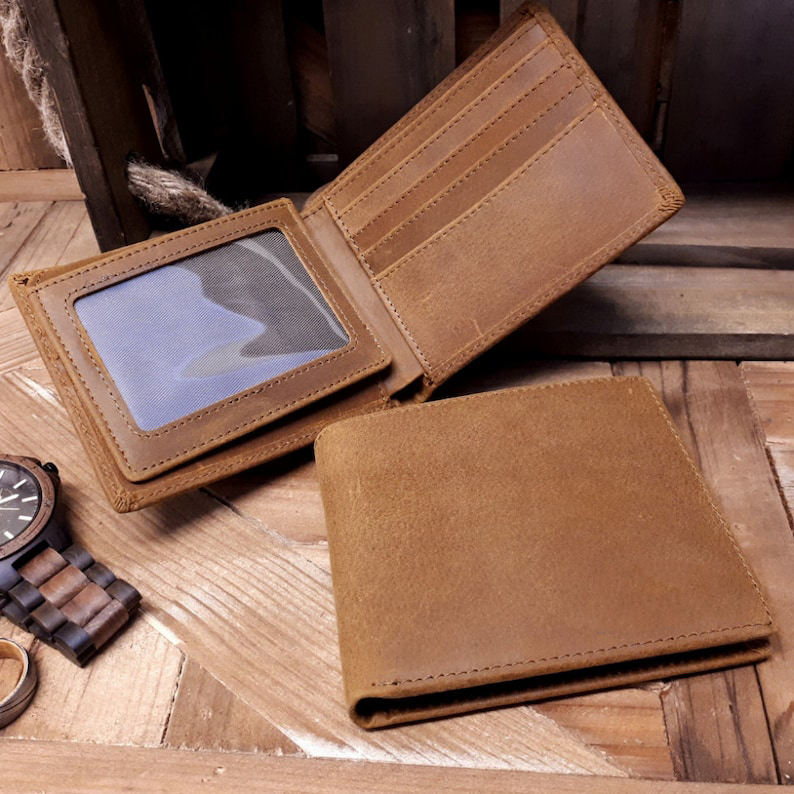 Cartera de cuero de vaca personalizada, regalo grabado personalizado para hombre, para novio, Rfid, marrón, 2017