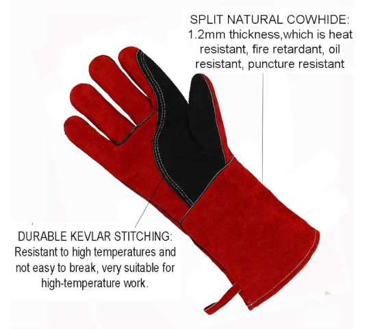 Guantes de Soldadura de Cuero Resistentes al Calor, de Piel de Vacuno, Profesionales, Resistentes, Industriales, para Soldadura, Barbacoa, Seguridad y Trabajo