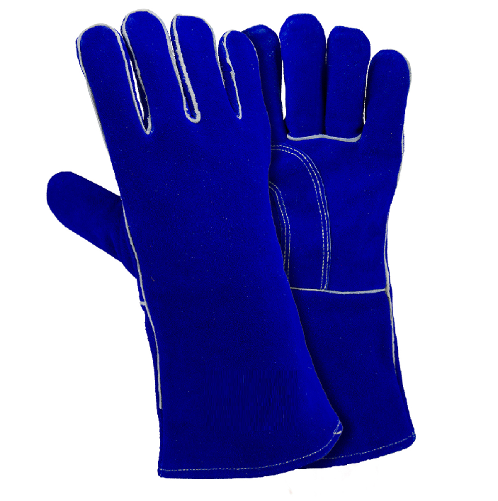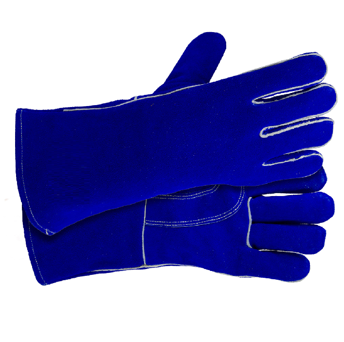 Guantes de cuero para soldar de color azul, guantes para soldar de cuero con hombros descubiertos, guantes para soldar de cuero grandes hechos con Kevlar