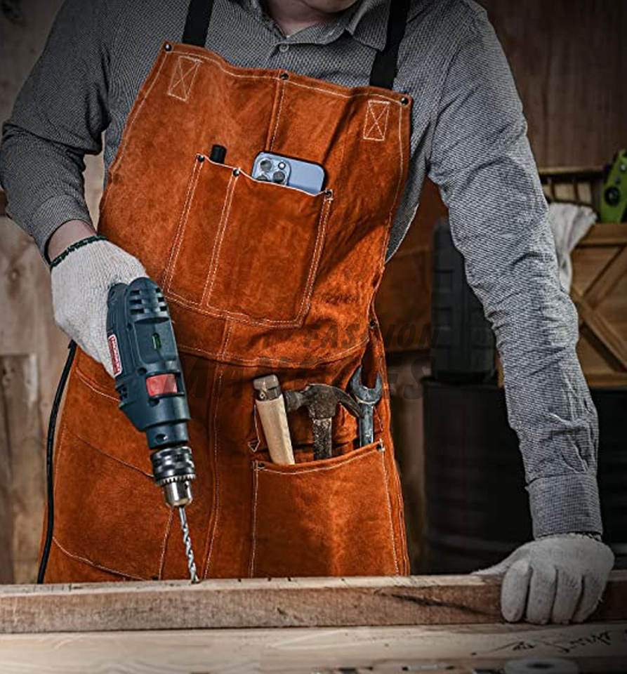 Delantal de Cuero Genuino Resistente al Fuego y al Calor, Diseño en Relieve, Uniforme Unisex para Personal de Enfermería, Color y Logotipo Personalizables