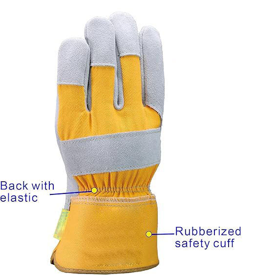 Guantes de trabajo de Palma de cuero Puño de seguridad de goma resistente, puño de seguridad largo para protección adicional