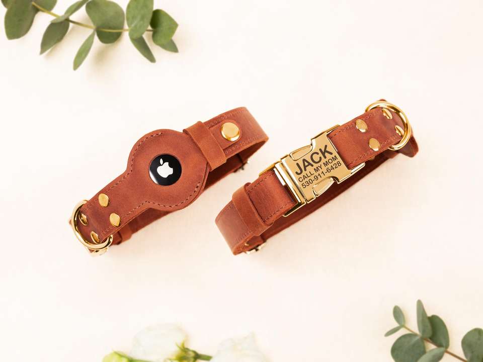 Cuero con estuche, soporte AirTag Vintage, Collar personalizado, regalos para mascotas, collar de perro con nombre