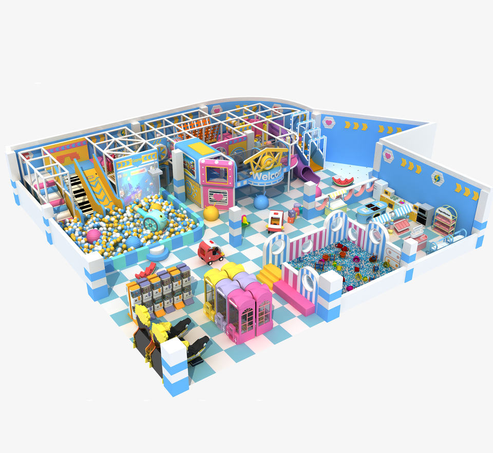 Función:tobogán, trampolín, piscina de bolas, arenero, escalada