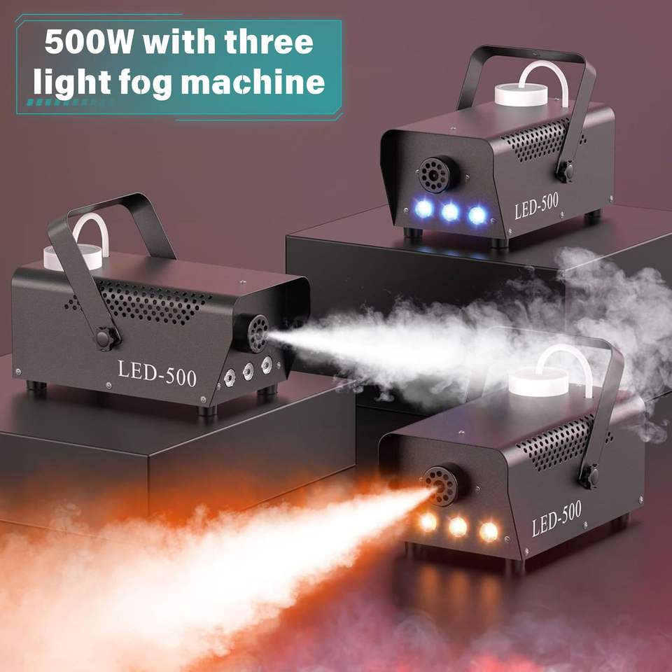 Máquina de humo Led-500 de 500W con 3 luces para fiestas, bodas, escenarios y uso en interiores.