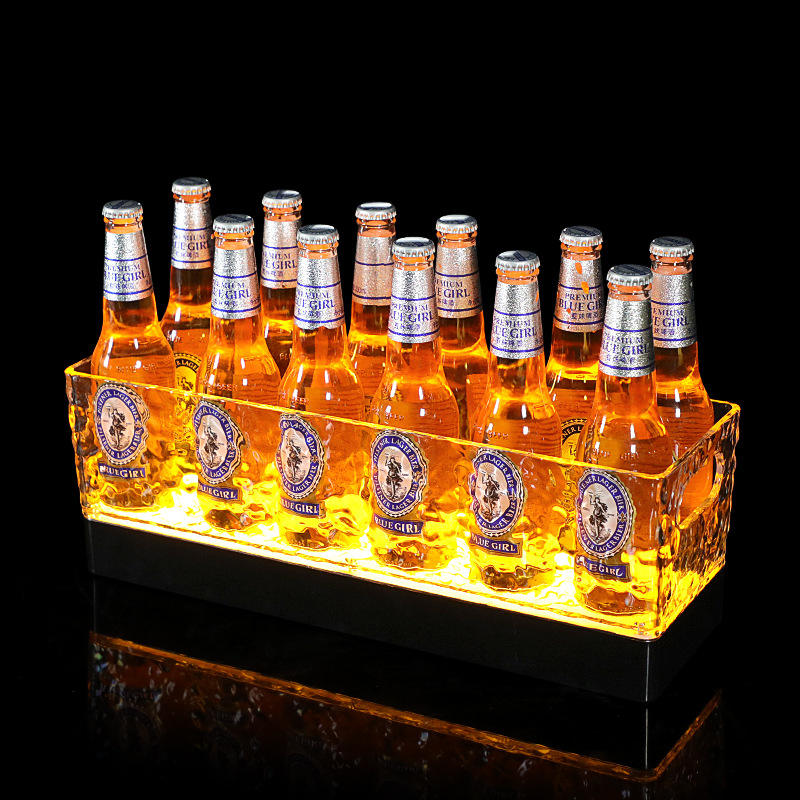 Cubo de hielo rectangular de plástico iluminado con LED y diseño de frutas para fiestas y bebidas