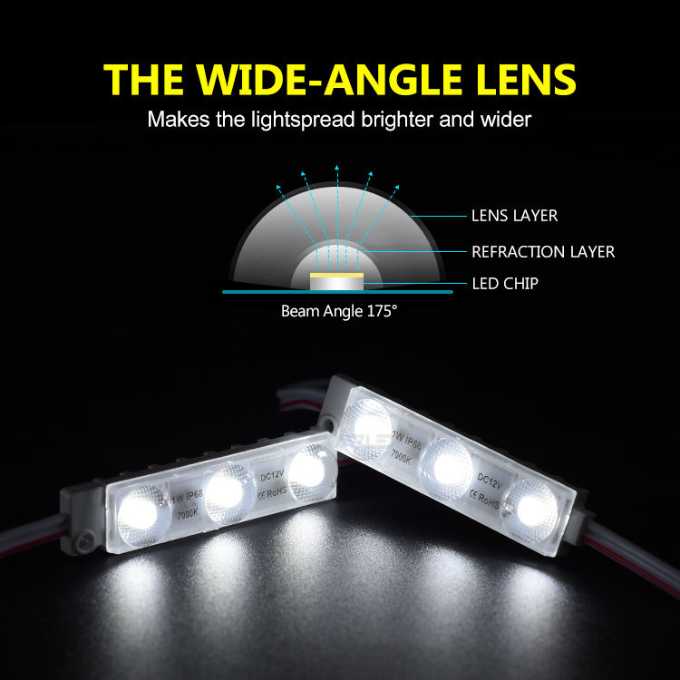 Módulo LED de Inyección Blanco 3 Lentes 1W IP68 para Letras de Canal LED, Letreros Digitales LED Flexibles para Exteriores, Módulo de Caja de Luz Publicitaria
