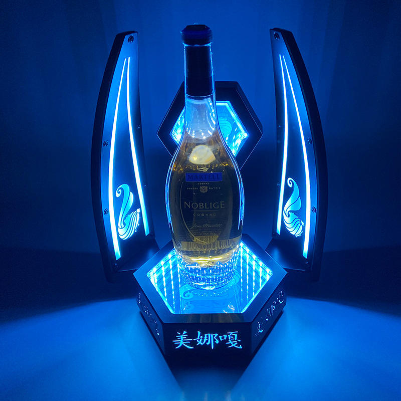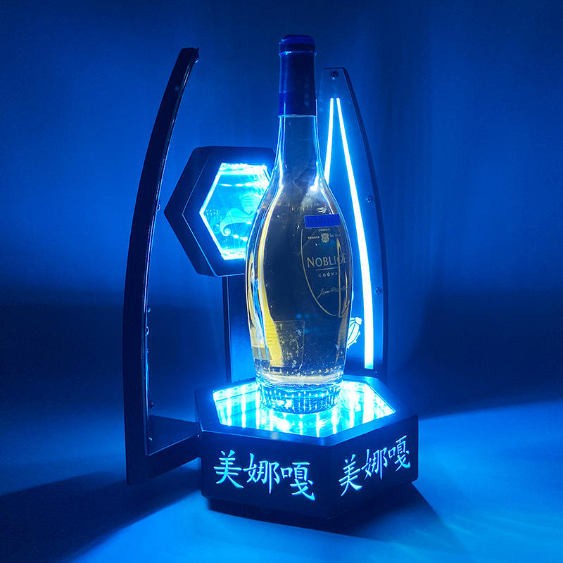 Exhibidor de Acrílico con Iluminación LED Azul Hielo para Botellas de Vino, Cócteles, Champán, KTV y Bares