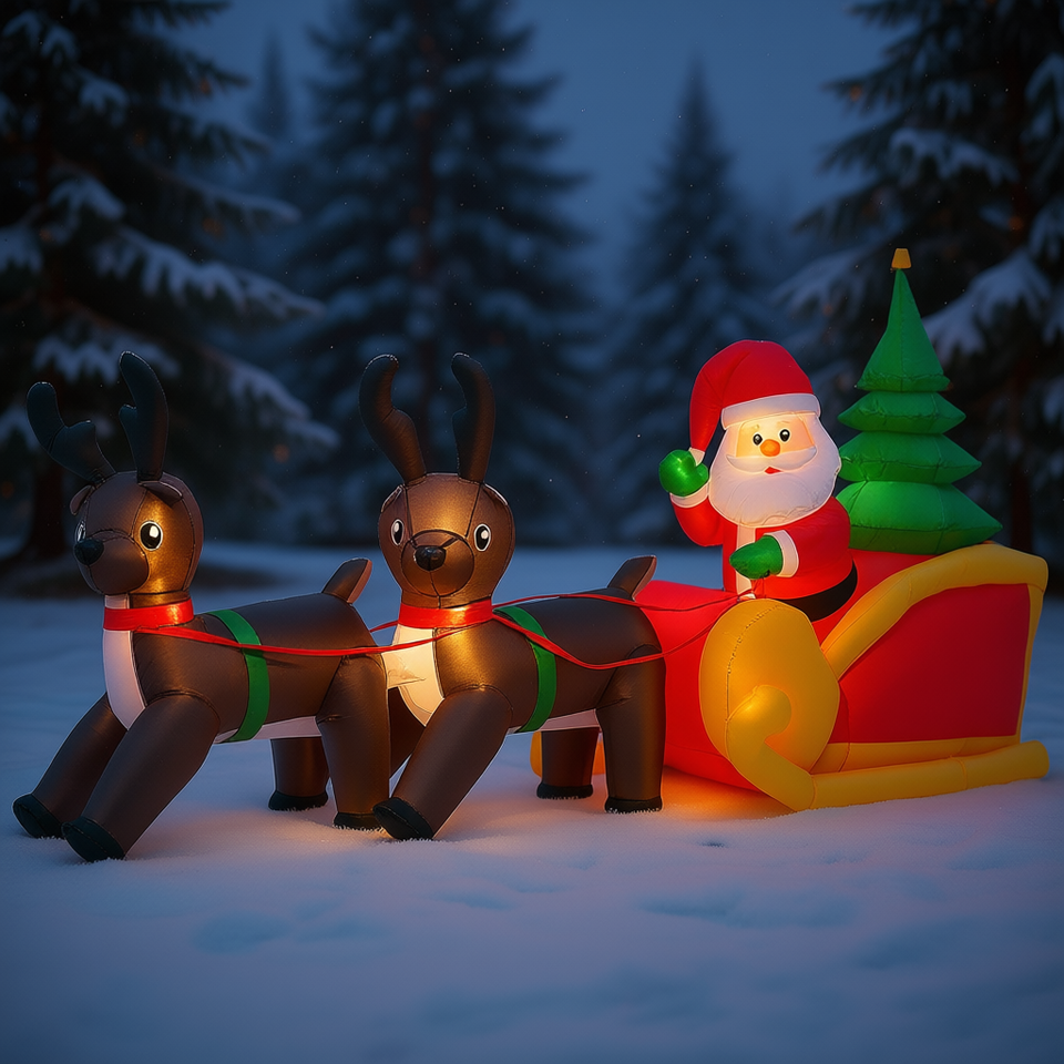 Decoración Navideña Inflable con Luces LED de Santa Claus y Reno, 7 Pies, Modelo D0100XFF0RX para Exteriores