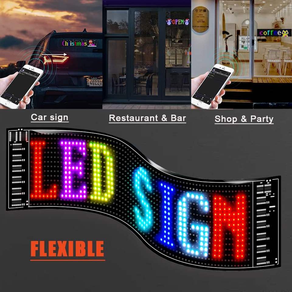 Panel de Matriz LED 14.64 X 3.6234 con Control por Aplicación Bluetooth, Pantalla LED Flexible con Texto Desplazable para Publicidad en Automóviles