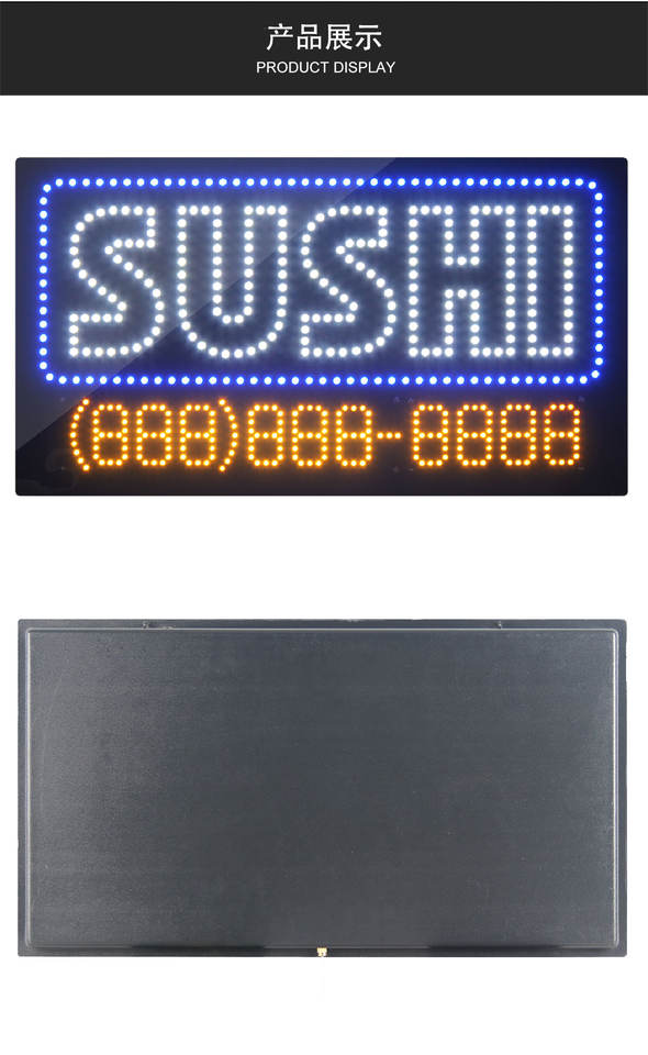 Nombre del producto:17 "x 31" brillante publicidad SUSHI comida teléfono número signo