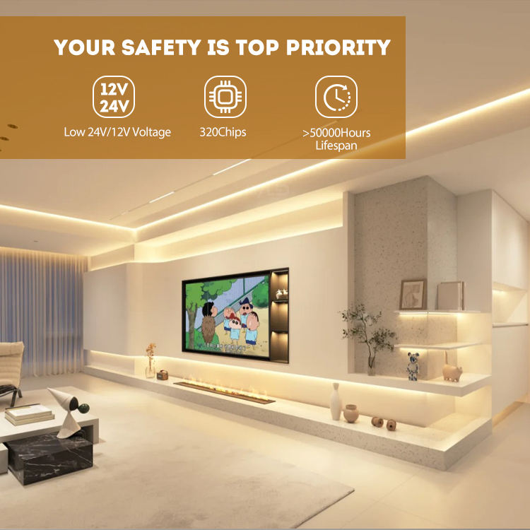 Nombre del producto:Tira de luz LED COB flexible de 12V 24V 100ft, luz blanca cálida 6500k