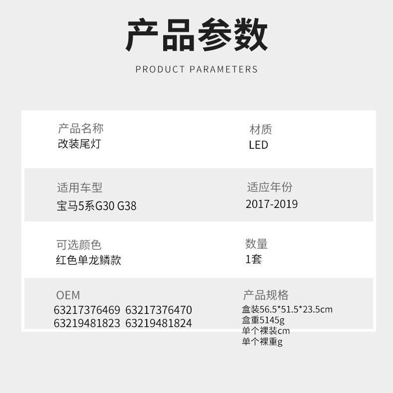 Applicable to 2017-2019 BMW 5 Series G30G38Applicable models
