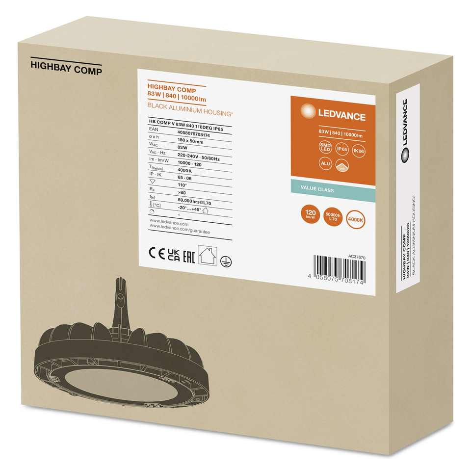 Lámpara LED Compacta de Alta Potencia Ledvance, 83W, 10000lm, Cuerpo Negro, Luz Natural 4000K, Cuerpo de Aluminio y Plástico