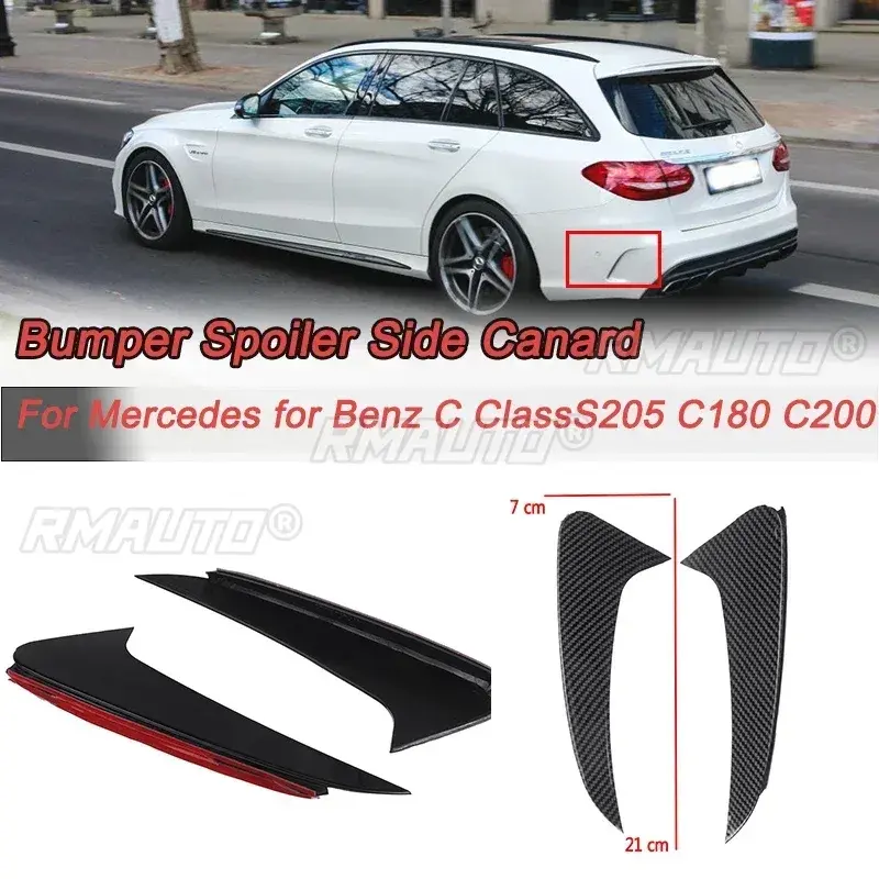 Alerón Lateral Trasero Izquierdo y Derecho para Mercedes Benz Clase C Estate S205 C180 C200 para AMG, Negro Brillante / Aspecto de Carbono