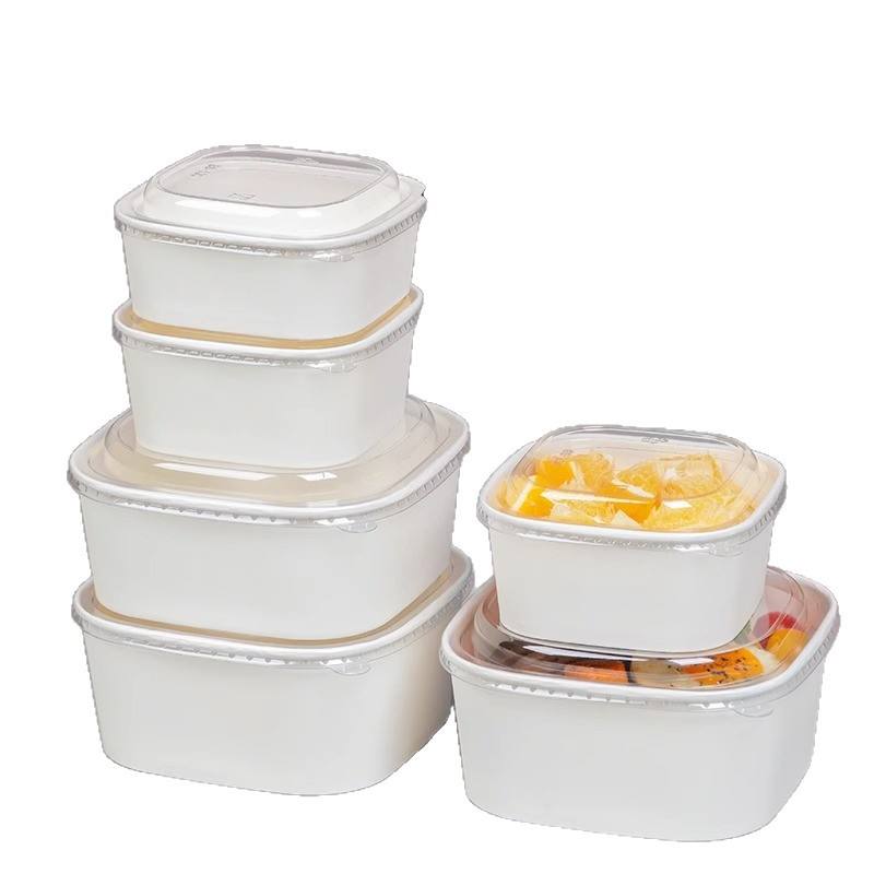 Contenedores desechables cuadrados para alimentos Lelejie con tapa de 5.5 pulgadas, papel de calidad alimentaria para ensaladas, frutas y comidas para llevar.