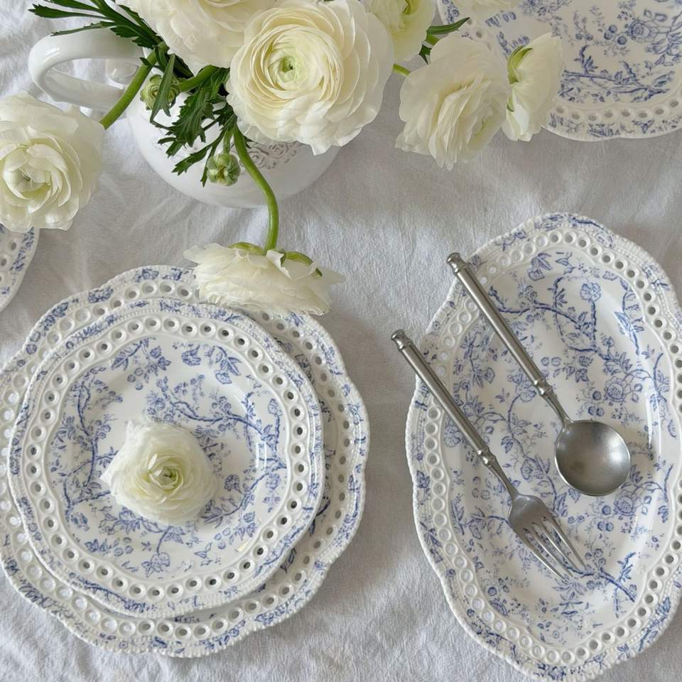 Platos de Porcelana Coreanos Hechos a Mano con Diseño Floral Romántico, Marca Lelyi