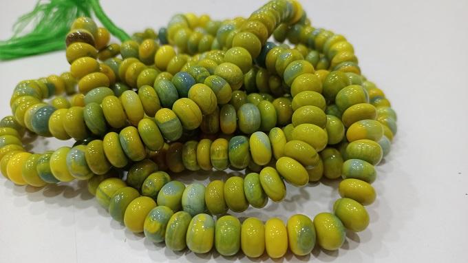 Cuentas de Ópalo Verde Limón Eminent Jewel, Forma Rondelle, Lisas, de 7 a 10 mm, Vendidas por Hilo de 8 Pulgadas de Largo, Excelente Calidad para Joyería
