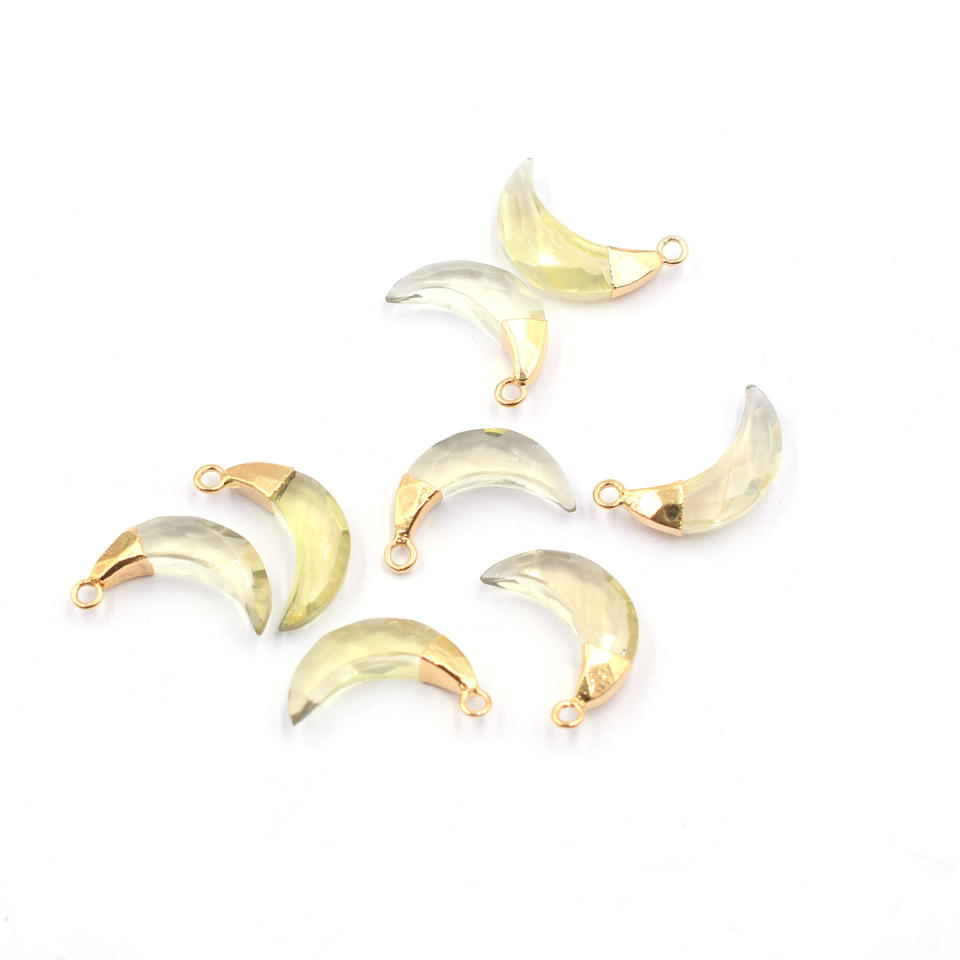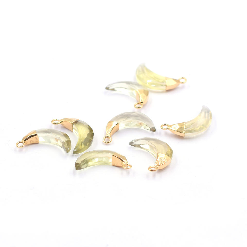 Nombre del Producto::Cuarzo Limón de 16 a 18 mm con Colgante en Forma de Luna Chapado en Oro.