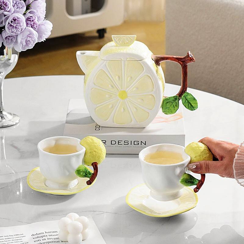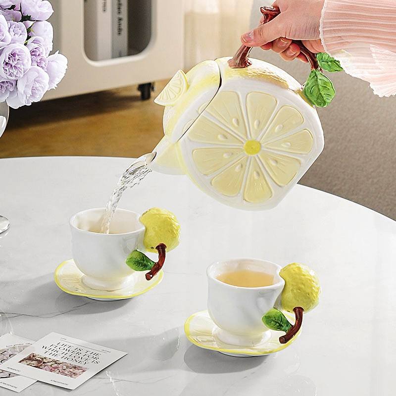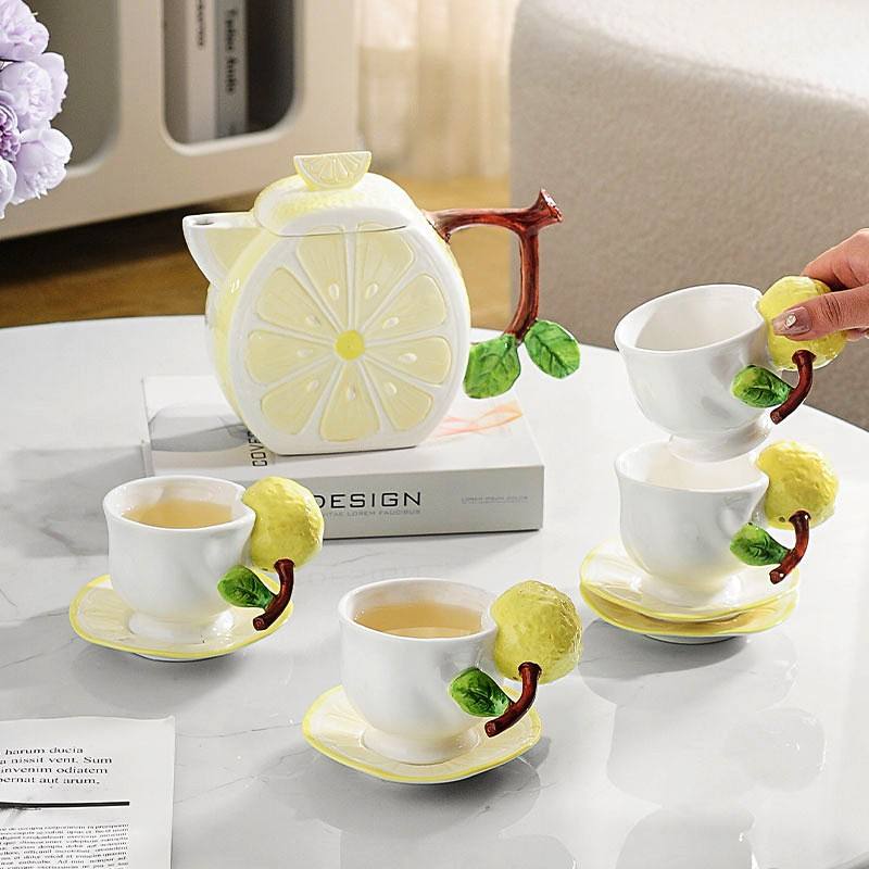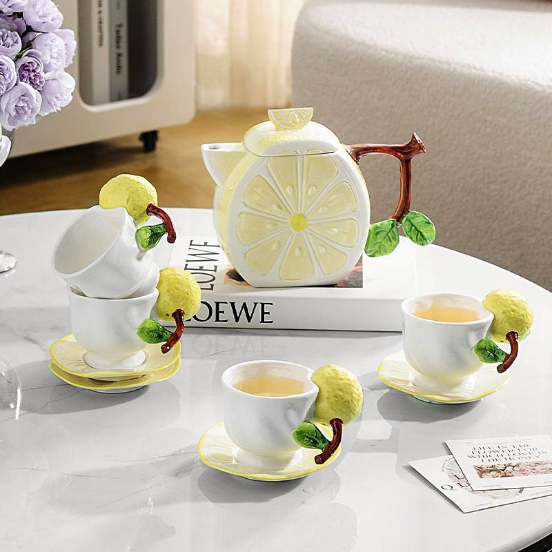 Juego de Té de Cerámica con Forma de Limón - Vajilla Divertida para el Hogar