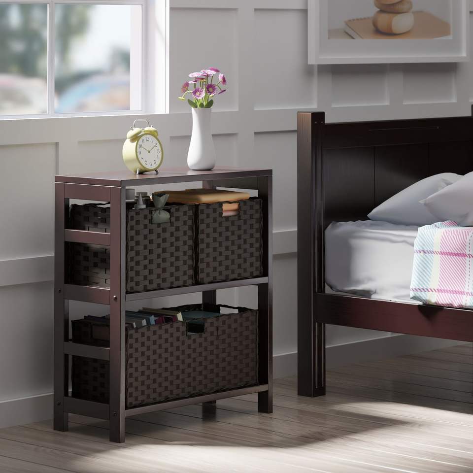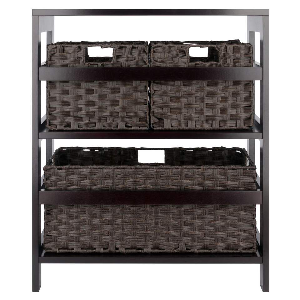 Estante de almacenamiento de chocolate y espresso Leo de 4 piezas con 3 Cestas tejidas plegables para muebles de sala de estar