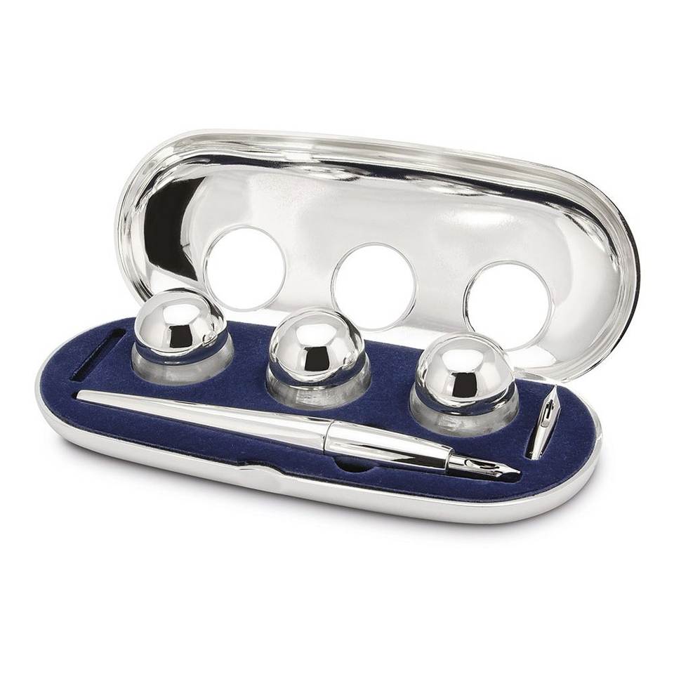 Juego de plumas de tinta Leonard Lux Box, instrumento de escritura con diseño elegante y acabado plateado