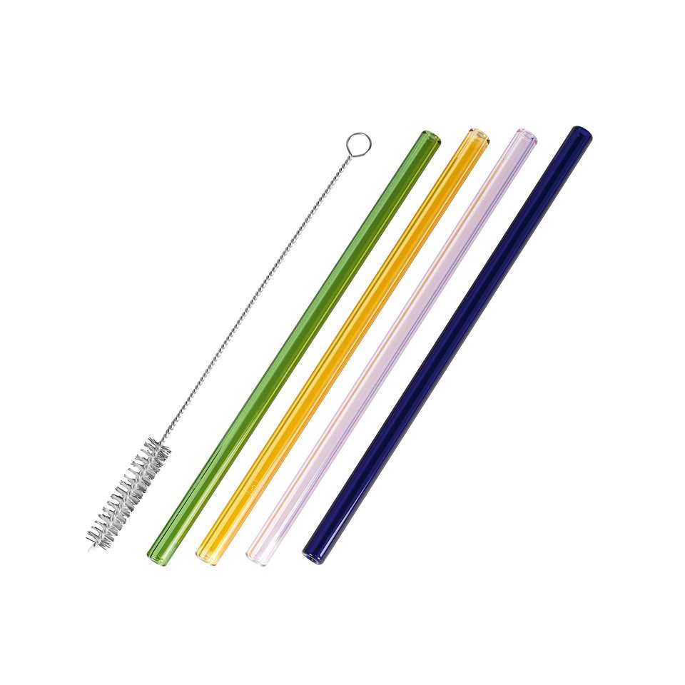Leonardo Trinkhalm Glas Bunt mit Reinigungsbürste 20cm 4er