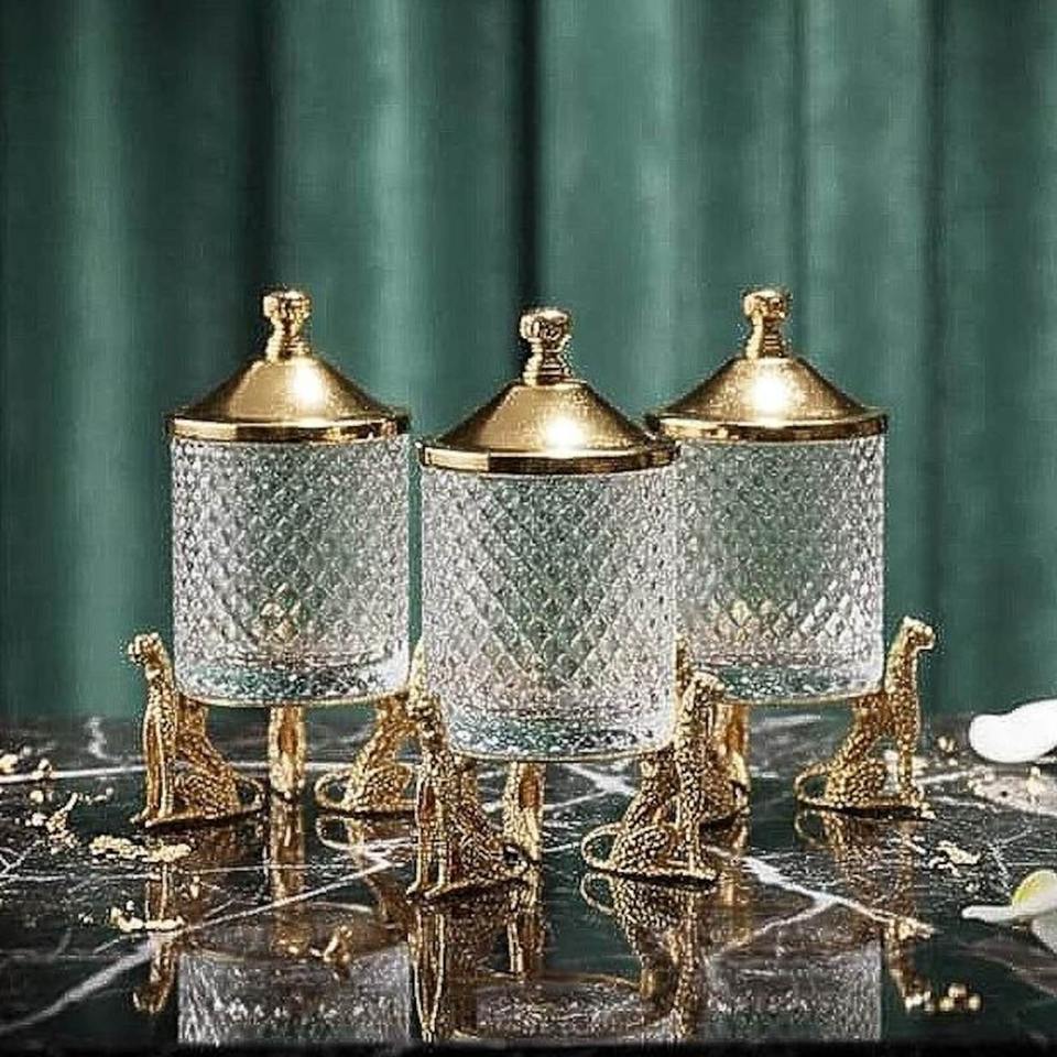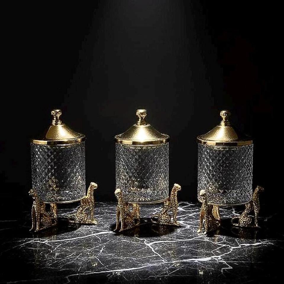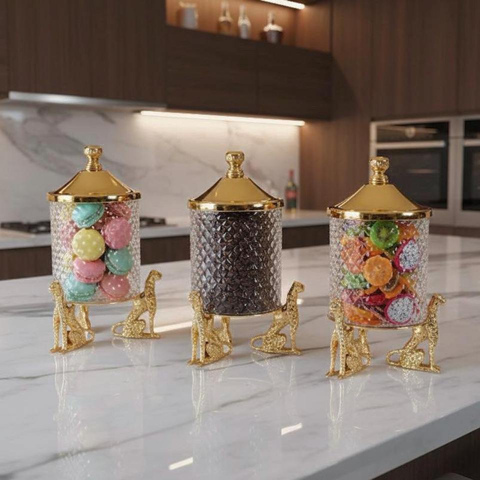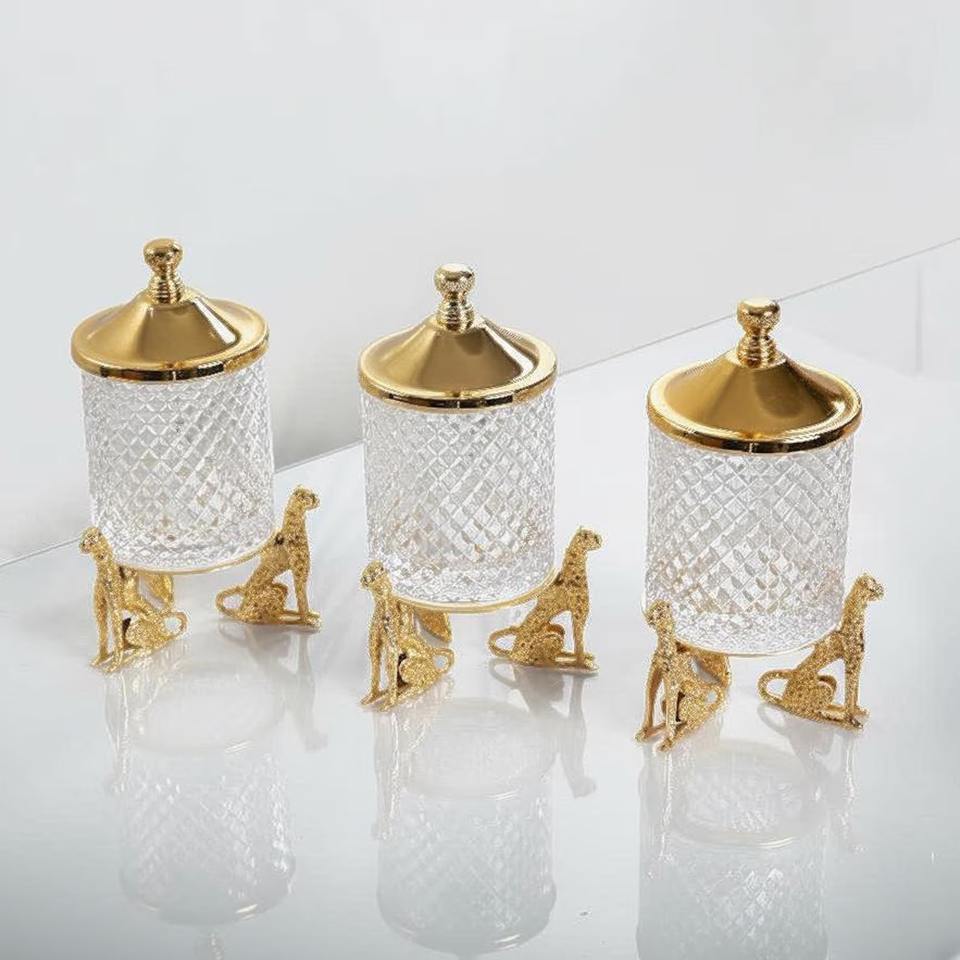 Recipiente de Vidrio con Base de Metal Dorado con Diseño de Leopardo, Frasco de Almacenamiento de Cocina de Lujo, Puede Usarse como Centro de Mesa Decorativo