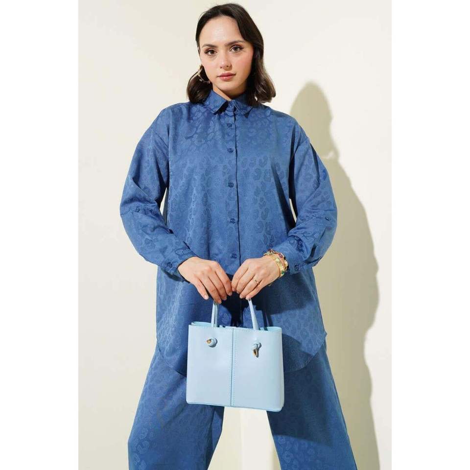 Conjunto De 2 Piezas De Jacquard Estampado Leopardo Indigo