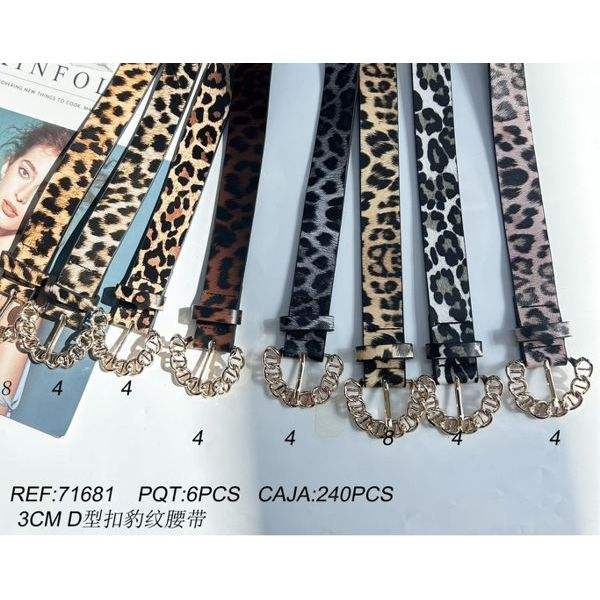 Cinturón con Estampado de Leopardo de 3 cm con Hebilla en D, Cinturón de Moda para Mujer