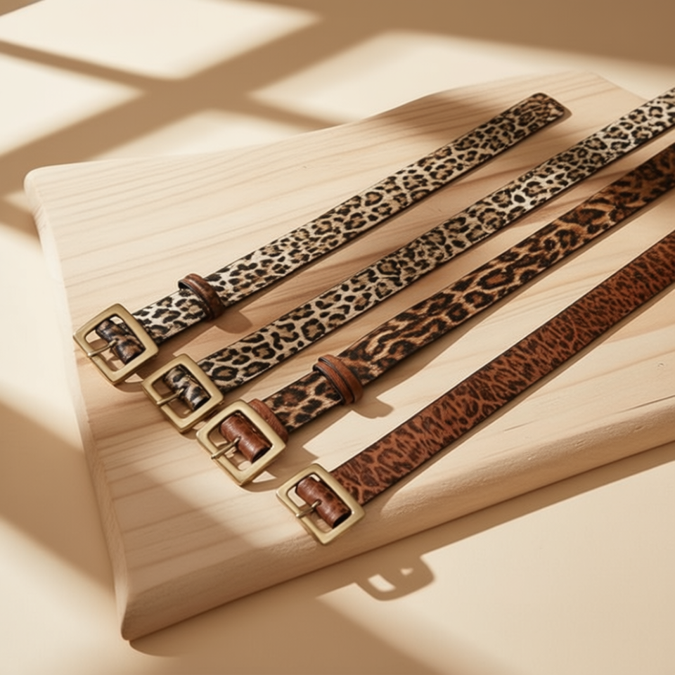 Cinturón con Estampado de Leopardo, Hebilla Cuadrada de 4 cm, Cuero Genuino, Accesorio de Moda para Mujer
